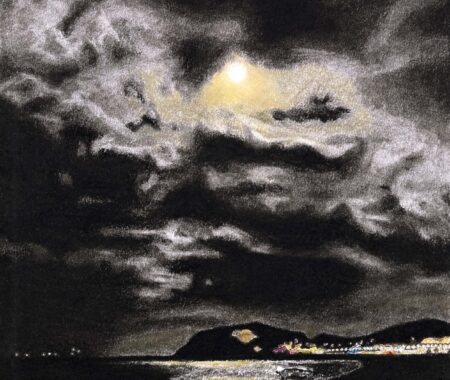 Little Orme – Big Sky. Original charcoal and pastel on paper seascape. Original artwork available to purchase in the website…
