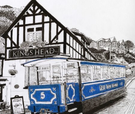 The Great Orme Tramway, Llandudno. Original Indian ink and pastel on paper. The original framed artwork will be available to…
