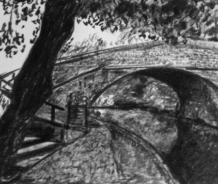 Charcoal landscape sketch of the canal bridge near my house in Stourbridge. Chubbs Bridge, a peaceful retreat.
