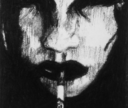 My charcoal on paper portrait with (again) Man Ray inspiration/influence