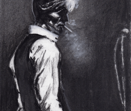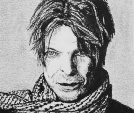 I revisited my charcoal portrait of David Bowie, adding a slash of pastel to create the iconic lightning flash. The…