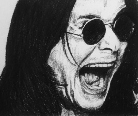 I started this portrait working next to my art stall at Kings Heath Street Fair in Ozzy’s hometown, Birmingham. Ozzy…