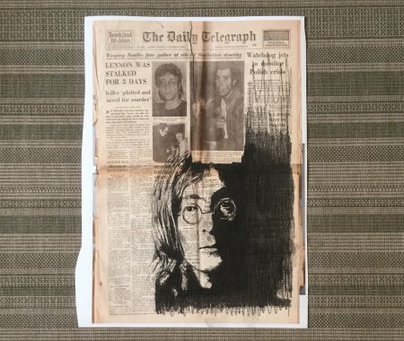 I created this charcoal portrait of John Lennon with charcoal onto newspaper, the front page of The Daily Telegraph from…