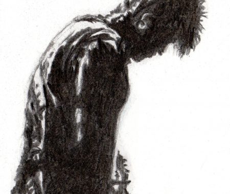 Created back in 2015 and part of a set of three original charcoal sketches of Rob Holliday; lyricist, guitarist and…