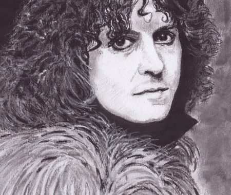 Marc Bolan – Charcoal on Paper Portrait. The original framed artwork is for sale and available to purchase from the…