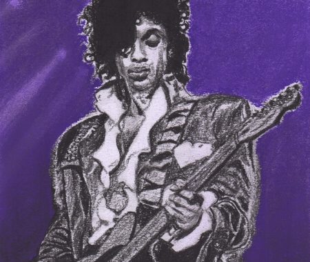 Prince – Charcoal on Paper Portrait (with pastel background) Limited edition fine art prints of this artwork are available to…