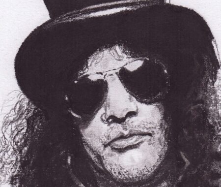 Slash – Charcoal on Paper Portrait. Limited edition fine art prints of this artwork are available to purchase from my…