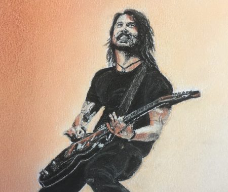 Pastel and charcoal on paper portrait of Foo Fighters frontman Dave Grohl. The framed original artwork is available to purchase…