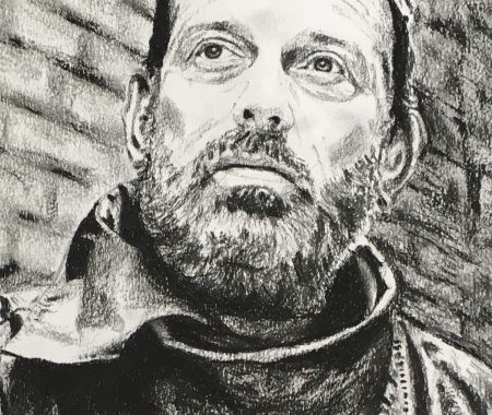 Latest charcoal portrait – Tom Hingley (former InspiraI Carpets frontman). I finished this ‘live’ at a Songwall SongwallLIVE! event at Birmingham Museum…