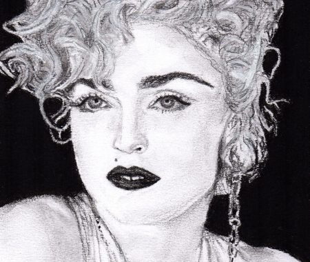 Madonna – Charcoal on paper portrait. The framed original portrait is for sale and available to purchase from my Shop…